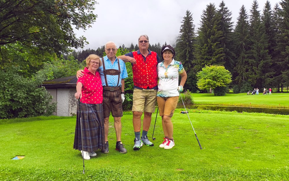 Bei diesem 9-Loch Juxturnier stand weniger das sportliche Abschneiden im Vordergrund, vielmehr sorgte der Spielmodus "Chapman Vierer" und das Antreten in Trachten-Kleidung für Spaß. Bei einigen gab es diesbezüglich Nachholdbedarf, die meisten der 44 Teilnehmerinnen und Teilnehmer hielten sich jedoch brav daran und präsentierten sich in ihren Lederhosen, Trachtenwesten, Dirndln usw.